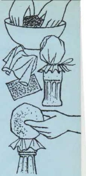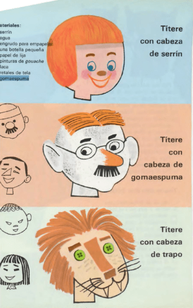 Con un puñado de serrín tienes bastante para hacer un títere. Mézclalo con agua hasta que parezca arena mojada. Añádele engrudo de empapelar y un poco más de agua hasta lograr una mezcla parecida al barro. Enrolla un trapo alrededor del cuello de la botella vacía. Cubre con pasta de serrín este trapo y dale la forma de una cabeza. Deja que se seque. Cuando esté seca, quita la botella y pule la cabeza modelada con papel de lija. Píntala con colores de gouache. Una vez que la pintura esté seca, dale una capa de laca. |