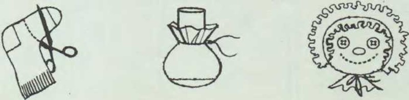 Para formar una cabeza de trapo, corta la punta de un calcetín viejo. Rellénalo de algodón. Enrolla un trozo de cartón a manera de tubo alrededor del dedo medio. Asegúrate de que no aprietas demasiado, para que puedas sacar el dedo cuando quieras. Ata después la abertura del calcetín alrededor de este tubo de cartón. Haz una cara de títere en el calcetín cosiendo trozos de fieltro, trapos, botones, hebras de lana, hilos, etc.