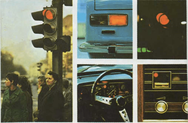 En el tablero de un coche en marcha, indica falta de gasolina, de aceite o de agua. Si se enciende en la parte trasera del coche, es señal de que el conductor está frenando.