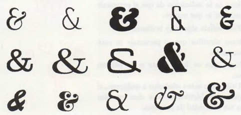 He aquí algunas de las diversas formas de este símbolo, cuyo significado, a pesar de todo, es siempre el de “y”.