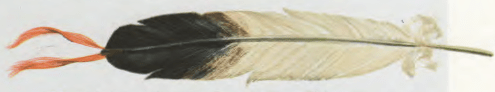 Una pluma roja con una muesca significaba que el indio había arrancado el cuero cabelludo a un enemigo.