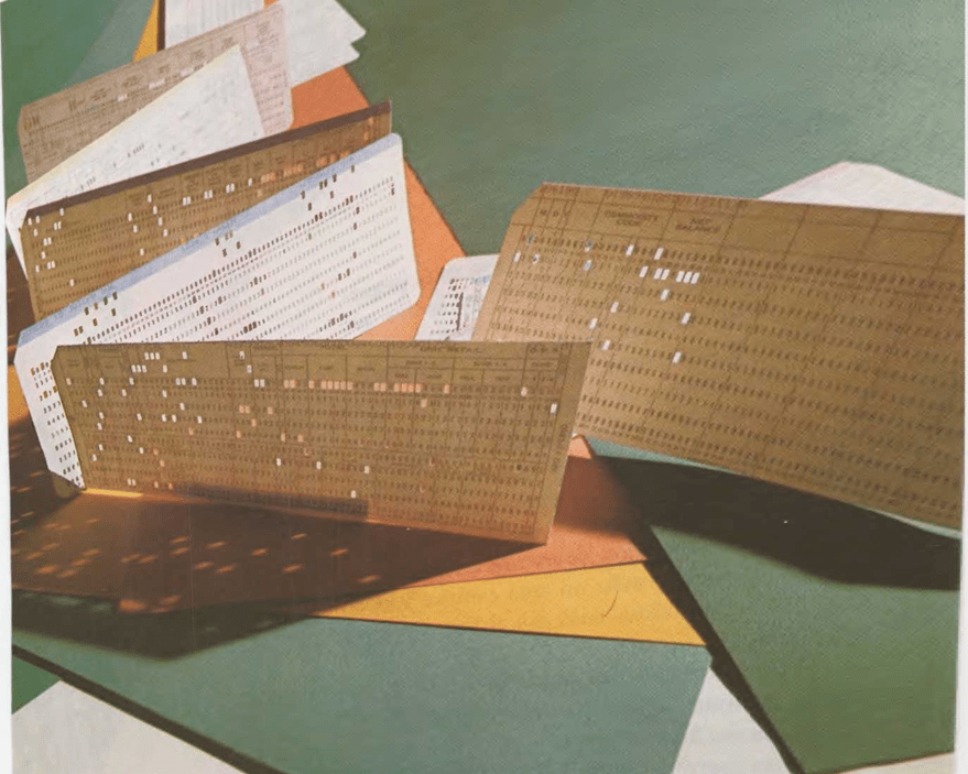 Las perforaciones de una ficha no te dicen nada. Pero probablemente pertenecen a un código para formular determinadas preguntas que un ordenador electrónico puede contestar.