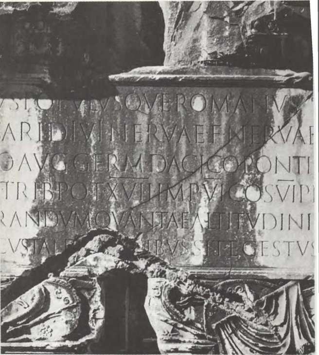 Estas letras, escritas en el pedestal de piedra de la Columna de Trajano, fueron grabadas en Roma hace casi 2.000 años.