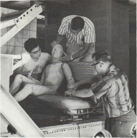 Los ingenieros colocan maniquíes en los coches y, después de provocar choques, averiguan mediante el examen de los maniquíes el daño que pudiera haber recibido una persona real.