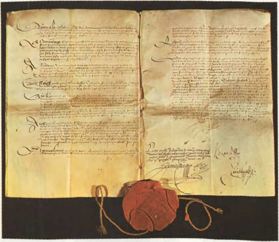 Última página del tratado de Cateau-Cambrésis, 1559, entre Francia y España.