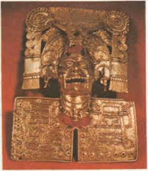 Pájaros de oro, grandes discos de oro, círculos de plata del tamaño de ruedas de carro, una máscara de oro enjoyada, un yelmo lleno de polvo de oro: he aquí la clase de regalos que envió el emperador azteca Moctezuma II a Hernán Cortés cuando éste desembarcó por primera vez en México.