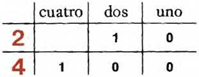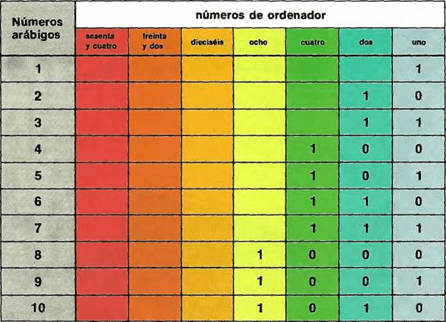 Cuando un ordenador registra el 2, lo hace con un 10: “un dos y ningún uno”. El 4 es 100: “un cuatro, ningún dos y ningún uno”: