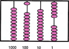 Compongamos el número 105 en un ábaco: subamos una cuenta de la columna de las centenas, ninguna de la de las decenas, y cinco cuentas de la columna de las unidades.