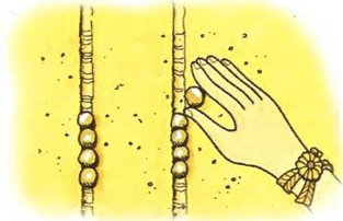 Con el dedo, dibujas dos surcos en la arena. Junto a los surcos, sitúas un saquito lleno de piedrecitas blancas y redondas. De hecho, estos surcos y estas piedras son una maravillosa máquina de calcular que puedes utilizar para resolver tu problema.