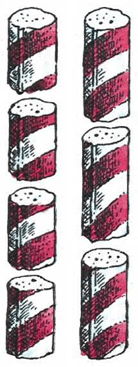 Compruébalo tú mismo. Aquí hay una barra de menta, de colores, partida en tercios y otra partida en cuartos. Como ves, los tercios son mayores que los cuartos.