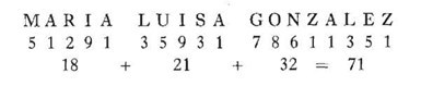 Por ejemplo, una niña que se llama María Luisa González obtiene de su nombre el número 71. Al sumar el 7 y el 1, obtiene 8.