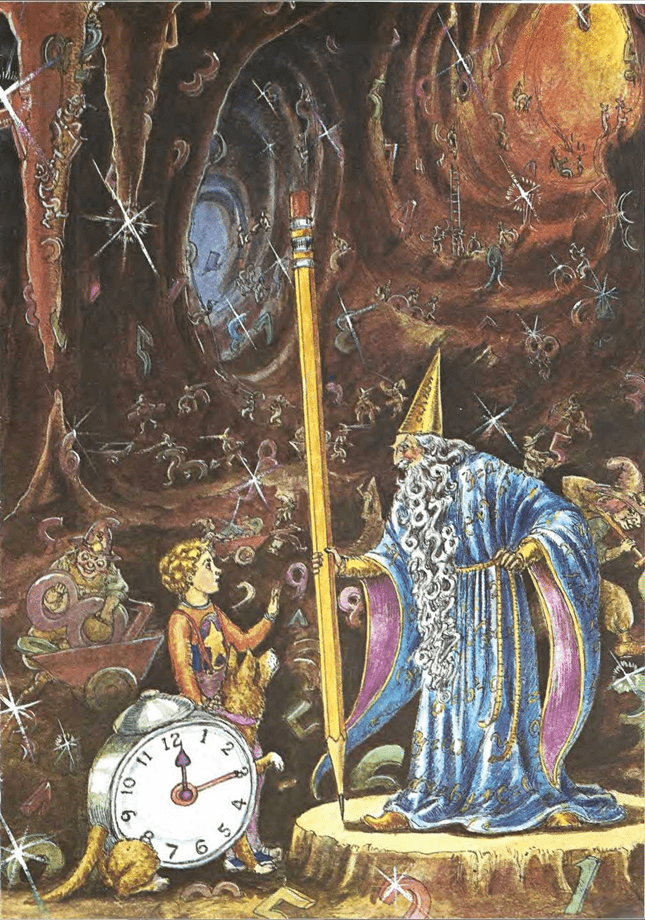 —¡Qué idea tan curiosa! —dijo el Matemago alzando el báculo y restregando de un lado a otro la goma de borrar contra el techo—. Ahora querrás hacernos creer que sólo duermes cuando estás cansado,