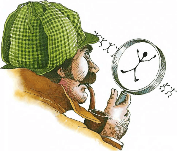 En la historia titulada La aventura de los bailarines, el famoso detective Sherlock Holmes resuelve el misterio descifrando un mensaje escrito en un código secreto. Holmes sabe que, en inglés, la letra e se usa con mayor frecuencia que cualquier otra. Así pues, llega a la conclusión de que el símbolo que aparece más a menudo en el mensaje cifrado podría representar la letra e. Partiendo de esta suposición, desentraña el enigma.
