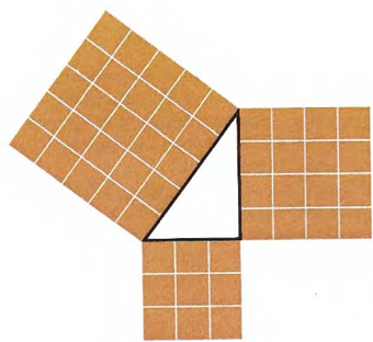 El triángulo del dibujo tiene lados de 3, 4 y 5 espacios. Al multiplicar 5×5 obtienes 25. Luego, multiplica 4×4; obtendrás 16; y 3 x 3, que son 9. Cuenta los cuadritos que hay junto a cada uno de los lados del triángulo y hallarás 25, 16 y 9. Si sumas ahora los