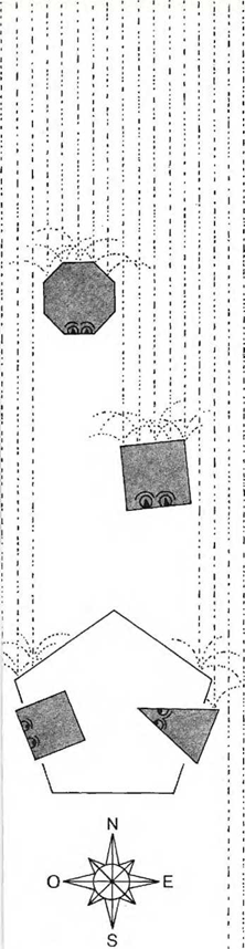 Las casas cuadradas o triangulares no están permitidas, por una razón: los ángulos de un cuadrado (y aún más los de un triángulo) son mucho más puntiagudos que los ángulos de un pentágono. Las líneas de las casas y las de los demás objetos son más apagadas que las líneas de los hombres y las mujeres. Así pues, existe el peligro de que los ángulos de una casa cuadrada o triangular puedan causar daño grave a algún caminante distraído que tropiece corriendo con ellas.