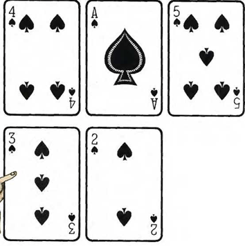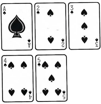 Puedes jugar a este juego tú solo, en el suelo o sobre una mesa. Sólo necesitas cinco cartas: un as, un 2, un 3, un 4 y un 5.
