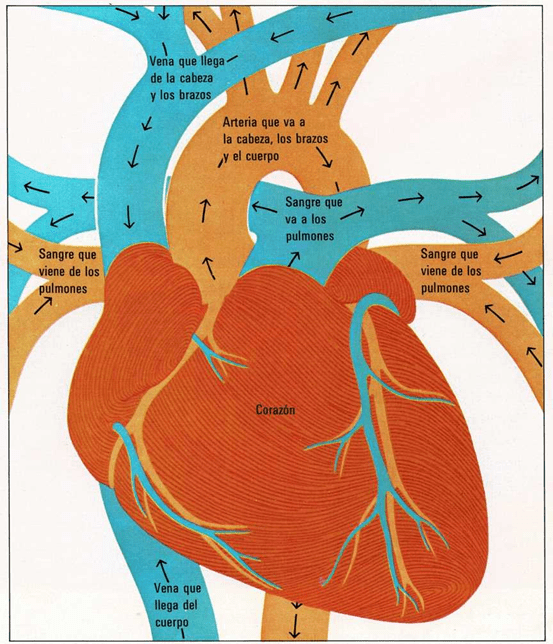 Dentro de mi cuerpo hay millares de tubos, denominados arterias y venas. Mi corazón hace circular la sangre a través de esos tubos para que llegue a todas las partes de mi organismo. Eso es lo que está haciendo mi corazón cuando pongo mi mano en mi pecho y noto sus latidos.