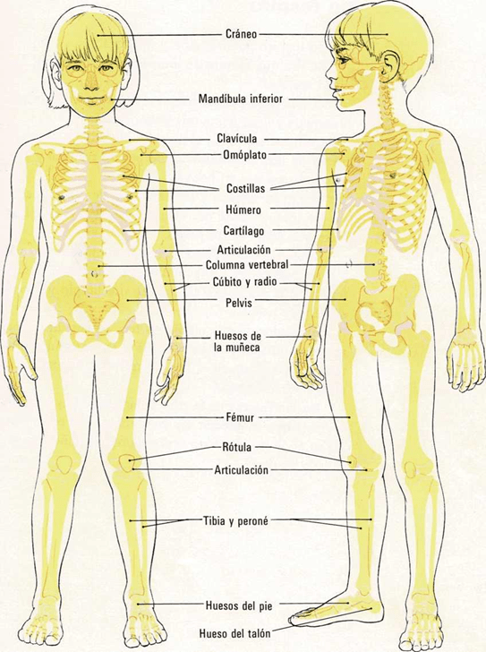 Mi esqueleto crece como yo. Está formado por 206 huesos en total.