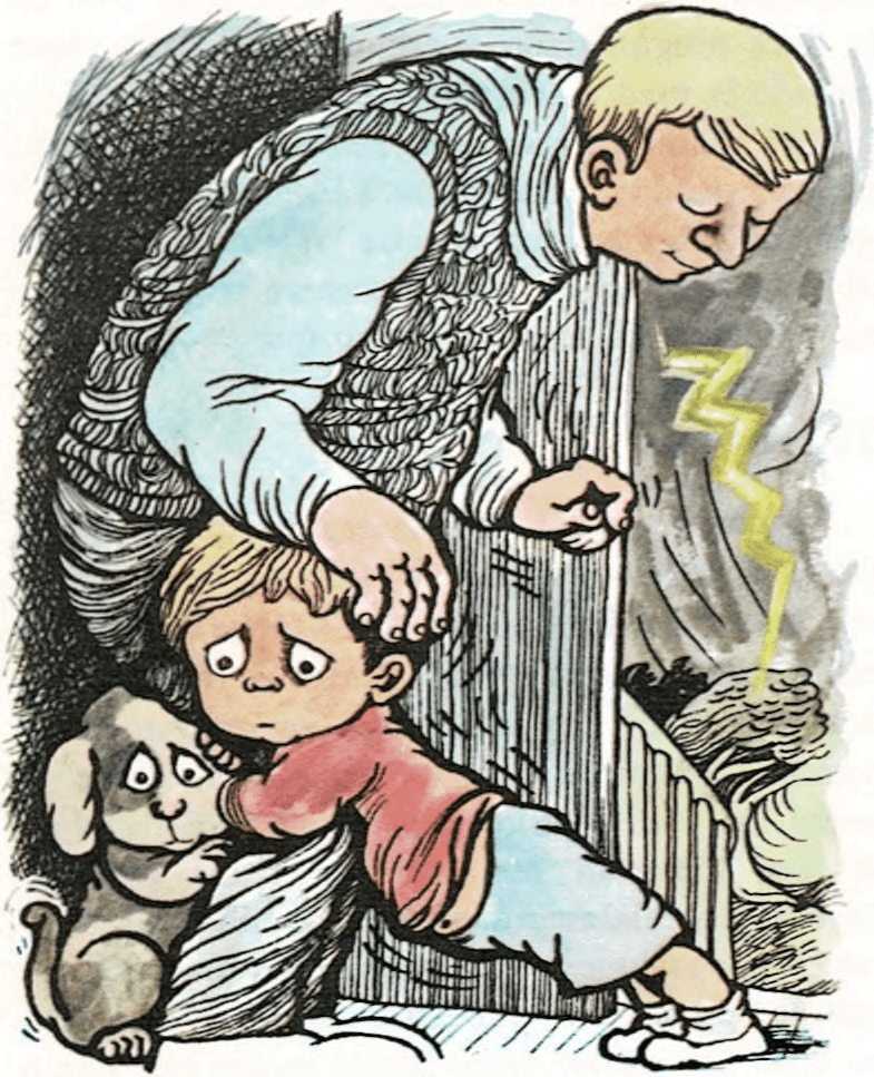 Una solución rápida y sencilla es una frase de ánimo: “¿No tendrás miedo de una cosa tan pequeña, verdad?” Los padres, naturalmente, no tienen miedo pues ya son personas experimentadas. El niño responde claramente y en ocasiones chillando: “Sí. Estoy asustado… es por eso que grito”. Todavía es peor avergonzarlo y burlarse de él: “No seas chiquillo… eres más miedoso que un gato… Creía que ya eras un chico (o chica) mayor”. Cuando un niño está asustado a causa de un trueno, un perro o un relámpago, no superará sus temores si además teme perder el amor y respeto de sus padres.
