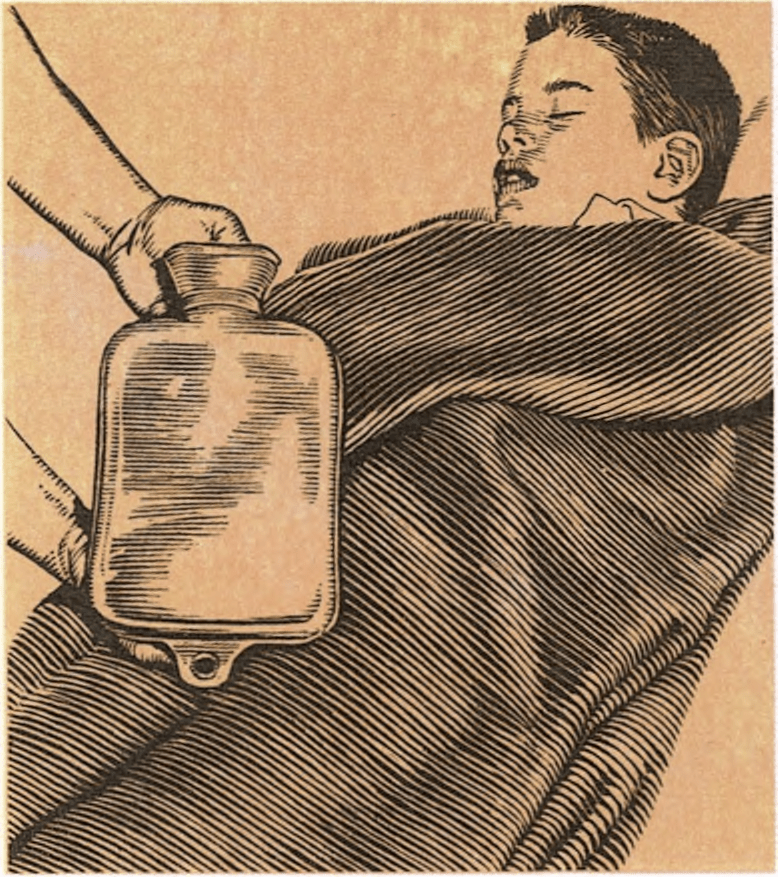Si un niño tiene conmoción, se le tenderá sobre el suelo o sobre una cama. Si ha perdido mucha sangre, se le levantarán un poco los pies. Se debe procurar que no se enfríe, pero tampoco pecar por exceso y abrigarlo demasiado. Una manta debería bastarle. Si al tocarlo, parece que está demasiado frío, se calentará artificialmente con una botella de agua caliente o una esterilla eléctrica, procurando no quemarlo.