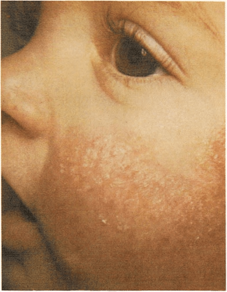Es una erupción provocada a menudo por una alergia a algún alimento, medicamento u otra sustancia irritante. Determinadas zonas de la piel se vuelven rojas y producen un picor persistente. A menudo éste es tan intenso que el niño se rasca hasta hacerse sangre. El rascado produce rasguños de los que exuda un líquido incoloro. La piel se toma más gruesa, áspera, seca y con escamas. En un lactante, la erupción aparece sobre todo en las mejillas, en los pliegues del cuello, brazos y en las piernas. En un niño un poco mayor, toma otra configuración, como pueden ser unas zonas engrosadas crónicamente por detrás de las rodillas, parte anterior del codo o en los pliegues del cuello. En los casos graves puede extenderse por todo el cuerpo. Si hay síntomas de que el niño tiene eccema, se consultará al médico.