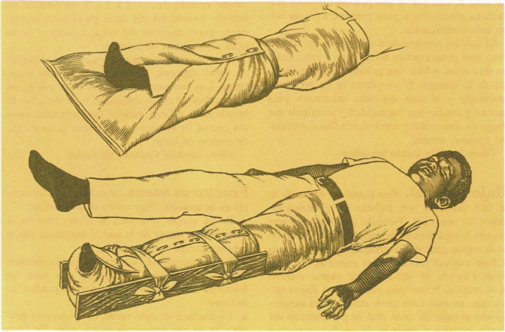 ■ Si se trata del hueso del muslo, se utilizará una tablilla desde el pie hasta la axila.