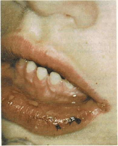 alrededor de la boca y en algunas ocasiones dentro de ella. Pueden aparecer tam bién en la membrana mucosa y en la piel cir cundante de los genitales de la niña. Es causado por un virus.