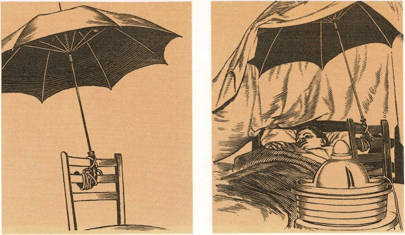 - Cúbrase la cama, la silla, el paraguas y el humidifícador con la sábana más grande que se tenga o bien con un sustituto de la misma, que pueda servir al efecto. Véase también Difteria