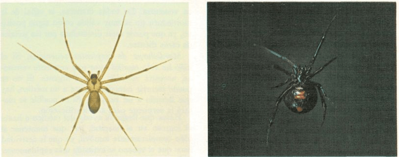 Las dos arañas más peligrosas para el hombre son la hembra de la viuda negra y la araña soli taria. Pueden ser fácilmente transportadas por viajeros, ya que se esconden en sitios oscuros como periódicos, ropas o zapatos.