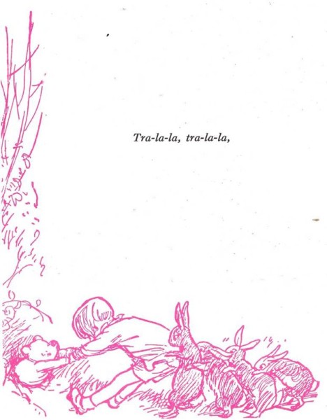 Y Christopher Robin, el conejo Pip y todos los amigos y parientes cayeron hacia atrás patas arriba… y encima cayó también el oso Fu… ¡ Libre!