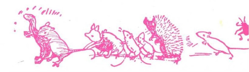 —¡Ajá! —dijo Fu (Ram-tam-til-am-tam)—, este agujero quiere decir conejo como dos y dos son cuatro. Y un conejo significa compañía. Y compañía significa comida y alguien que va a oír mi canción y todo lo demás (Ram-tam-tam-til-am).