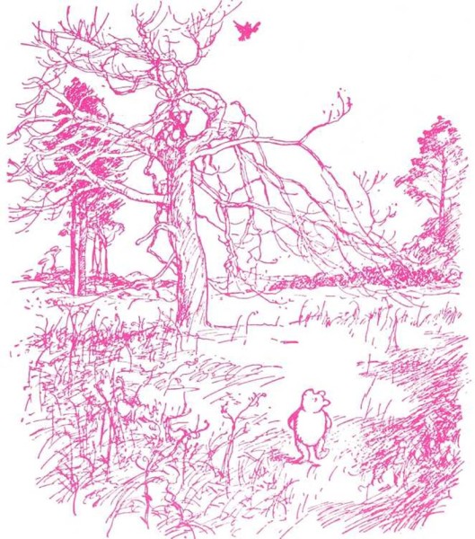 Y haciendo un saludo con la cabeza a sus amigos, continuó su camino por el bosque canturreando para sí. Christopher Robin le miró y se dijo: «¡Ah, viejo oso tonto!».