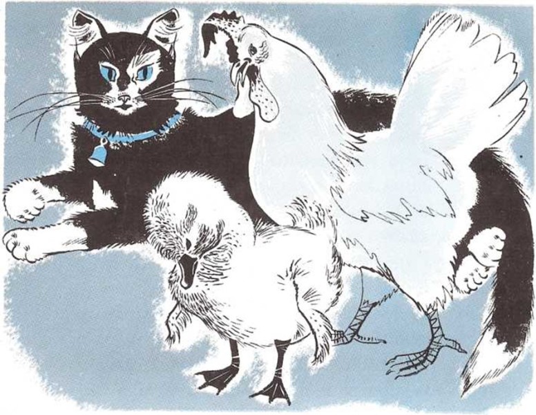 —¡Ah, sí!, ¡vaya placer! —replicó la gallina—. Debes de haber perdido el juicio. Pregúntaselo al gato, que es el ser más razonable que conozco; pregúntale si le gusta tirarse al agua e irse al fondo, y no quiero hablar de mí misma. Pregunta a nuestra ama, la vieja; nadie tiene más experiencia que ella. ¿Crees que siente el menor deseo de nadar y dejarse ir al fondo?