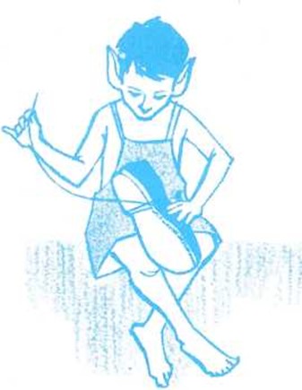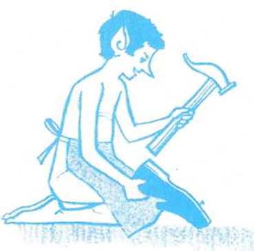 El zapatero accedió con gusto a la proposición de su mujer. En seguida, los dos, muy ilusionados, pusieron manos a la obra y no abandonaron su trabajó hasta que lo tuvieron terminado del todo al anochecer. Entonces, se fueron a cenar, y cuando llegó la hora de acostarse dejaron los regalos sobre la mesa, en lugar de los zapatos cortados de cada día, y se colocaron de modo que pudieran observar lo que hacían los duendecillos. Al sonar las doce, entraron éstos dis-