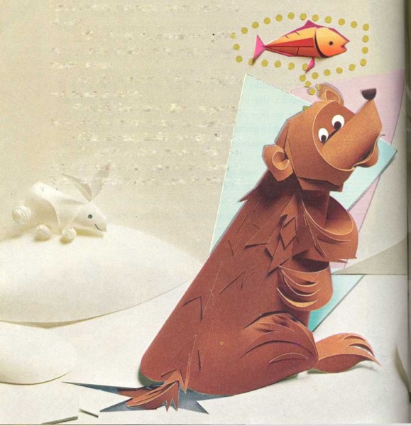 Un día de invierno, el oso se encontró con la zorra, la cual corría furtivamente con unos peces que había robado.