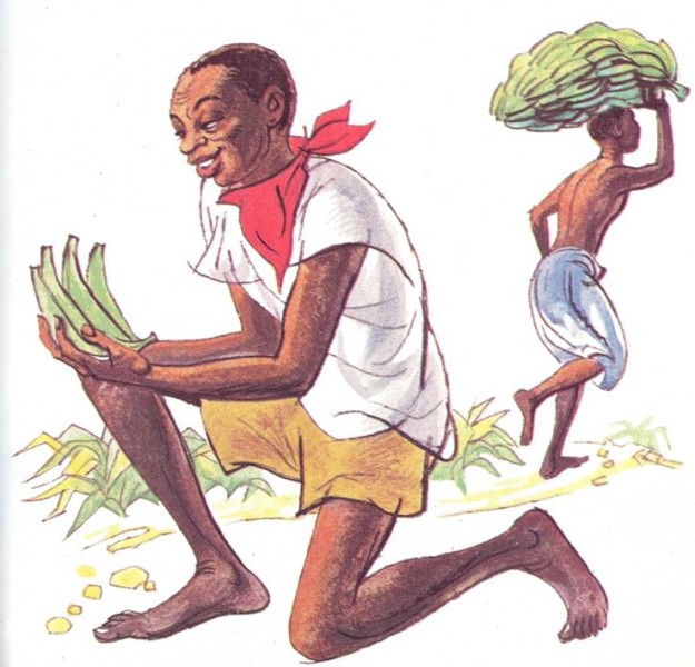 —No —repuso Anansi, dando un profundo suspiro—. Sólo hay para cuatro. Yo también tengo hambre, porque no he comido nada; pero sólo hay cuatro plátanos.