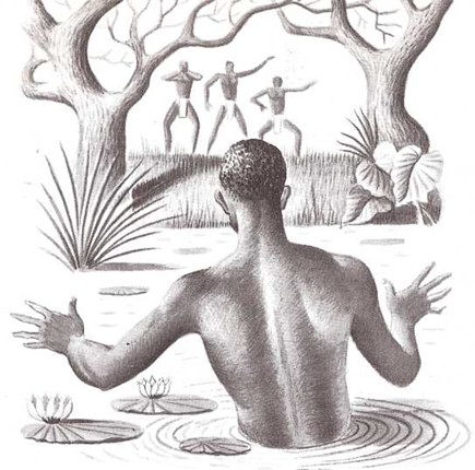 Llegaron a la corriente de un río y vieron a un hombre que se bañaba.