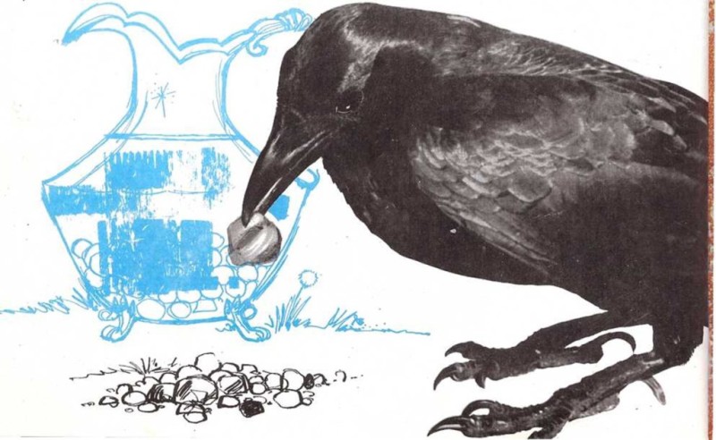 Un cuervo se acercó, medio muerto de sed, a una jarra que creyó llena de agua; mas, al introducir su pico por la boca de la vasija, se encontró con que sólo quedaba un poco de agua en el fondo y que no podía alcanzar a bebería, por mucho que se esforzaba. Hizo varios intentos, luchó, batalló, pero todo fue inútil. Se le ocurrió entonces inclinar la jarra, probó una y otra vez, pero al fin, desesperado, tuvo que desistir de su intento. ¿Tendría que resignarse a morir de sed?