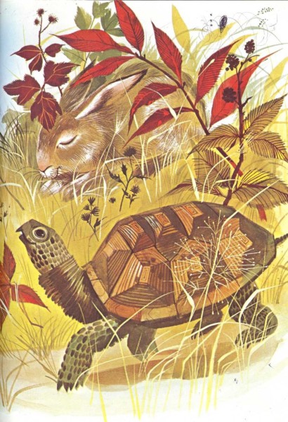 Se fijaron las condiciones en que debía efectuarse la carrera y comenzó la prueba. La liebre desapareció, pero se detuvo pronto y, despreciando a la tortuga, se tumbó a descansar.
