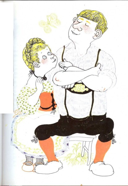 —Verás —dijo Gudbrand—, tampoco tengo el ganso, porque cuando anduve un poco lo cambié por un gallo. —¡Dios mío, cómo piensas en todo! —comentó admirada la mujer- Lo mismo que yo hubiera hecho. ¡Un gallo, imagínate! Es lo mismo que un buen reloj, porque cada día canta a las cuatro y así podremos estirar las piernas en el buen tiempo. ¿Qué haríamos con un ganso? No sé cocinarlo; y por lo que respecta a la almohada, puedo rellenarla de algodón. ¡Corre, niño, y trae el gallo!