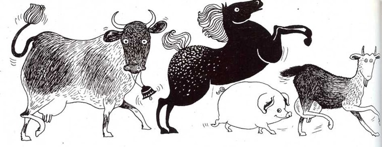 Un poco más lejos, se encontró con otro hombre que iba andando y empujaba a un cerdo gordo; se dijo para sí que era mejor tener un cerdo gordo que un caballo, por lo que hizo un trato con el hombre.