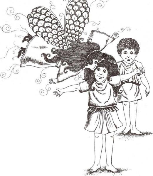 La voz parecía tan dulce y cariñosa que Pandora y Epimeteo levantaron juntos la tapa. De allí salió una criatura, un hada brillante y sonriente. Voló hacia Epimeteo, le tocó suavemente el lugar donde el mal le había picado y, al momento, el dolor desapareció. Después, besó a Pandora en la frente y su daño también se curó al instante.