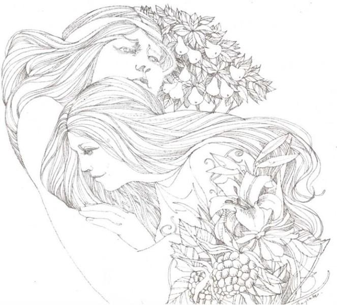 Cuando Deméter se enteró de que Perséfone sólo podía estar con ella seis meses del año, decidió sacar todos los tesoros que tenía guardados, y mientras Perséfone estuviera con ella el mundo se llenaría de belleza y alegría.