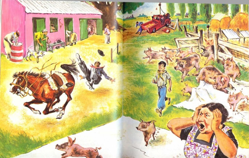 ¿Qué había sucedido? Nada más y nada menos que se había olvidado de cerrar la puerta del chiquero y los chanchos habían decidido entonces darse una vueltecita por la estancia.