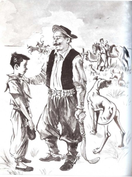 Se quedó en las parvas esperando el atardecer. ¡Qué lindas eran las puestas de sol! Todo iba tiñéndose de rojo y violeta y mil sonidos diferentes comenzaban a ganar el campo. De pronto oyó la campana llamando a cenar. Con un suspiro hondo, dejó de mala gana las parvas y se llegó hasta las casas.