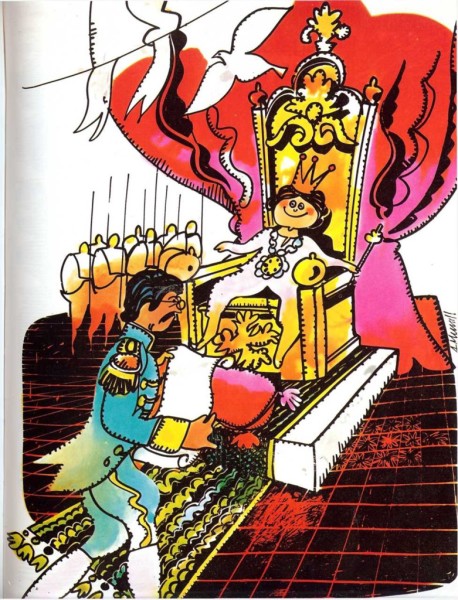 Cuando se calmó el entusiasmo popular, vinieron los ministros, uno por uno, y empezaron a hablarle de los asuntos del país: del peligro de una guerra con la república vecina; de la situación angustiosa de los obreros que no tenían trabajo, que andaban dando voces por la calle; de las carreteras que había que construir para que el reino prosperase; del poco dinero que había en los bancos; de un juez que había mandado soltar a unos ladrones porque le regalaron doce monedas de oro; de un choque de trenes con cuarenta heridos que acababa de ocurrir a quince kilómetros de la ciudad… y de otros mil asuntos de que tenía que ocuparse un buen rey, si quería de veras a su pueblo.