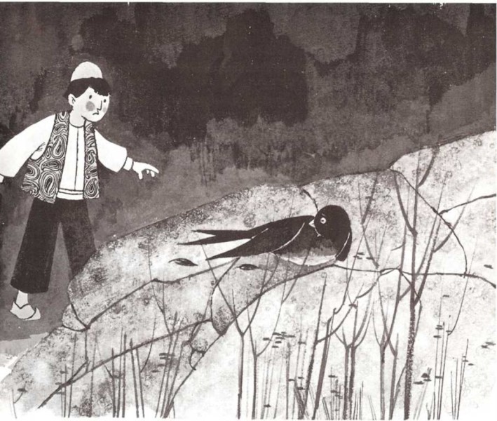 «Vieron una golondrina que había -caído sobre una roca, exhausta, medio muerta y casi helada. Uno de los viejos del grupo puso hierbas especiales y hojas sobre la delicada ala del ave, justo en el sitio donde una profunda herida se escondía bajo las plumas^