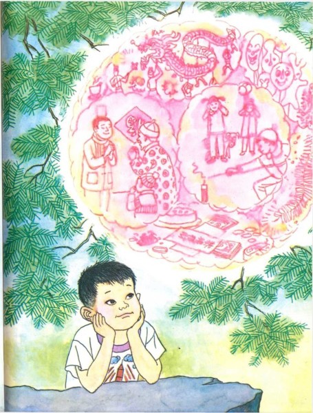 Con el calor del verano los pensamientos de Chiao-yen volaban hacia los fríos meses del invierno. Estaba sentado en una mesa de piedra debajo de un árbol de mimosa, escuchando cómo reían sus seis amiguitos que jugaban en el patio. Pensaba en su día favorito: Año Nuevo, que cae a mediados de invierno.