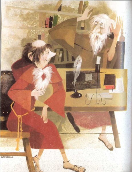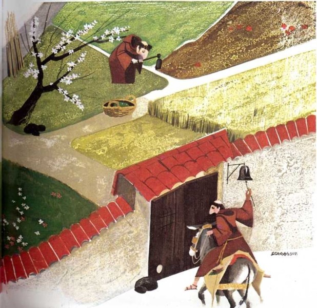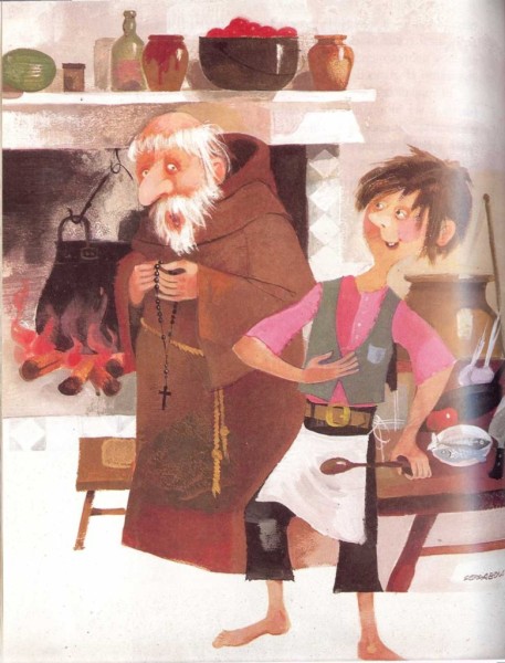 Un abad muy bueno y muy honrado gobernaba un monasterio de monjes que repartían su tiempo entre la oración y el trabajo. El monasterio era muy grande. Tenía huertos y una biblioteca, una iglesia y una cocina. En la cocina trabajaba un muchacho muy despabilado que los monjes habían recogido en los alrededores del convento muchos años atrás, casi recién nacido, creyendo que era hijo perdido de algunos pobres mendigos o titiriteros, y así lo criaron y le enseñaron el oficio de cocinero.