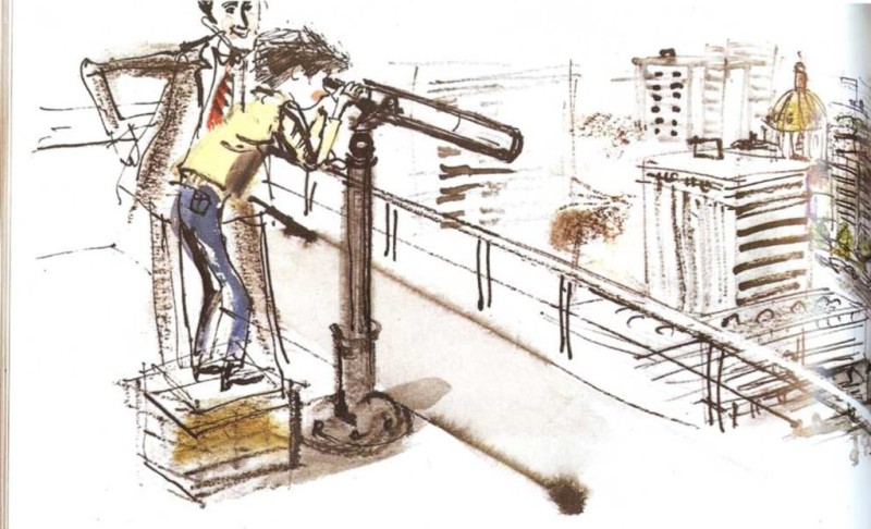 —Si miras por todas las calles de la ciudad, tardarás mucho tiempo —dijo el hombre—. Quizá puedas verla si subes a lo alto de este edificio y la buscas con el telescopio.